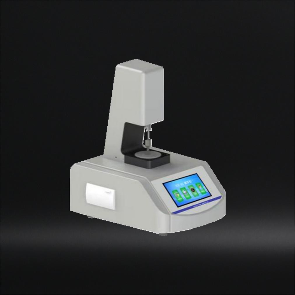 采用機(jī)械接觸式測(cè)量方式,將試樣放置于測(cè)試平臺(tái)上,通過(guò)傳動(dòng)裝置落下測(cè)量頭,在一定的測(cè)量壓力和接觸面積下,通過(guò)高精度傳感器讀取試樣的厚度。